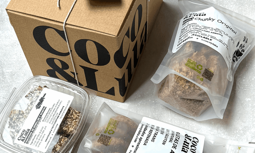 Una bolsa en papel ecológico con cinta y tarjeta: