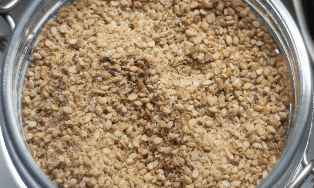 El gomasio es un topping japonés elaborado con ajonjolí integral y sal marina que eleva tus comidas. En COCO & LULA remojamos el ajonjolí y luego lo tostamos a fuego muy bajo, esto hace que podamos aprovechar sus beneficios. El gomasio es rico en calcio, una cucharada aporta 88 mg de calcio, también es rico en fibra, en magnesio y en hierro. Lo puedes usar como topping para ensaladas, tostadas, arroz etc.
